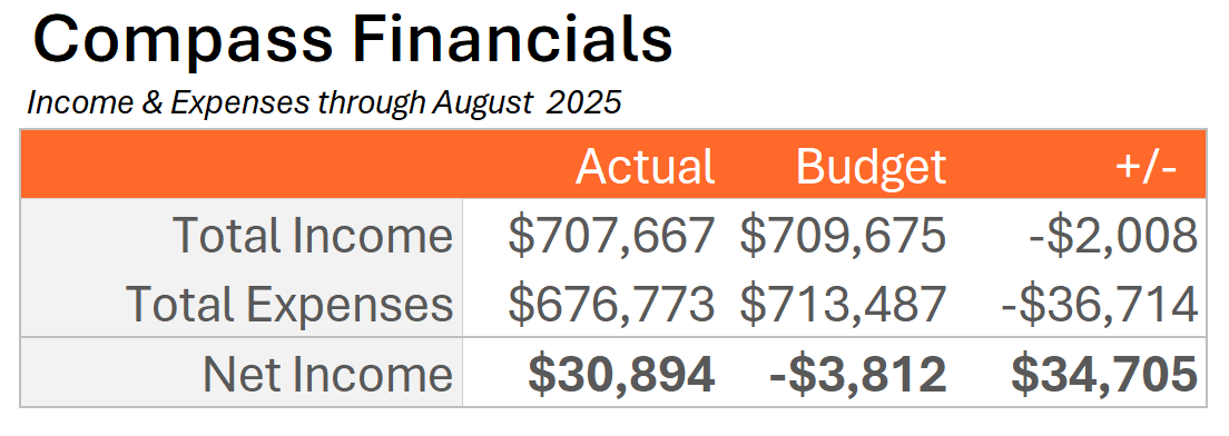 We include monthly financial updates in our newsletter as well as keeping this information here on our website. This is an ongoing effort to show our kingdom work and how Compass uses your generosity to impact our local community and churches around the globe.